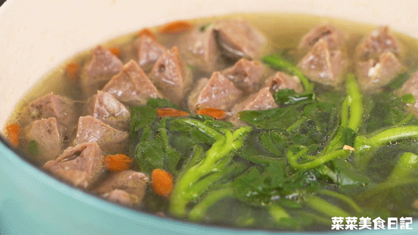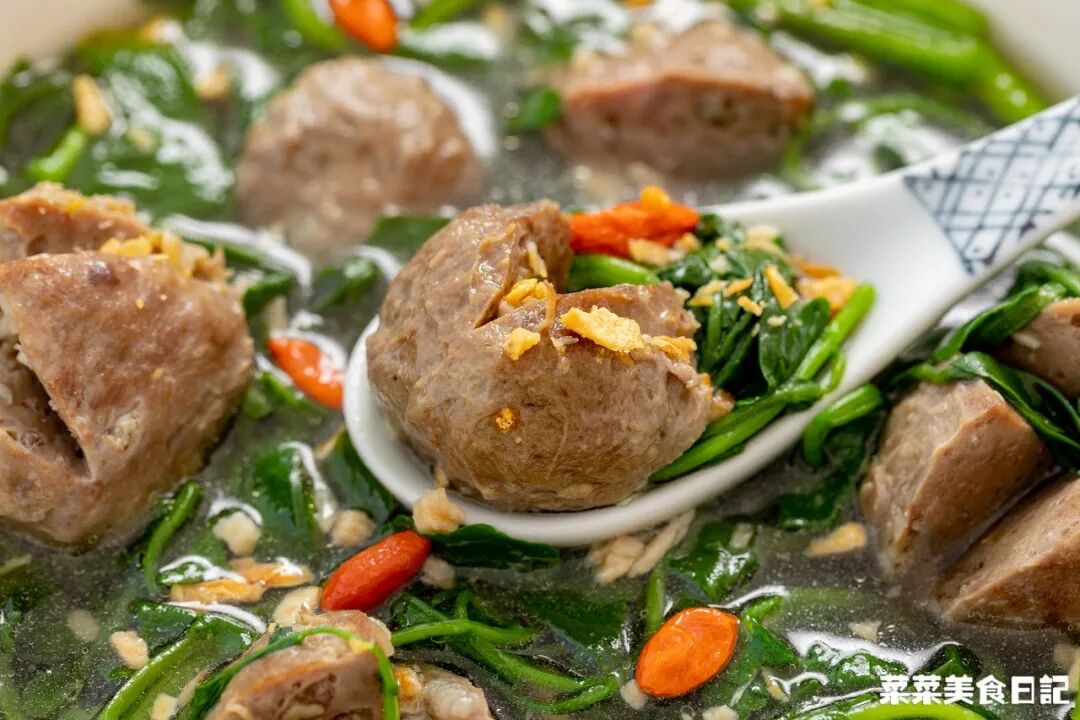 牛肉丸Q彈爆汁,咀嚼時脂香肆溢,西洋菜吸飽了湯汁,又甜又脆,百吃不厭~