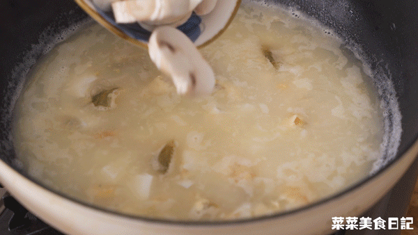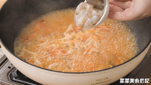 再加入開水、菌菇煮沸,最後把蝦仁燙熟,就能調味出鍋了~