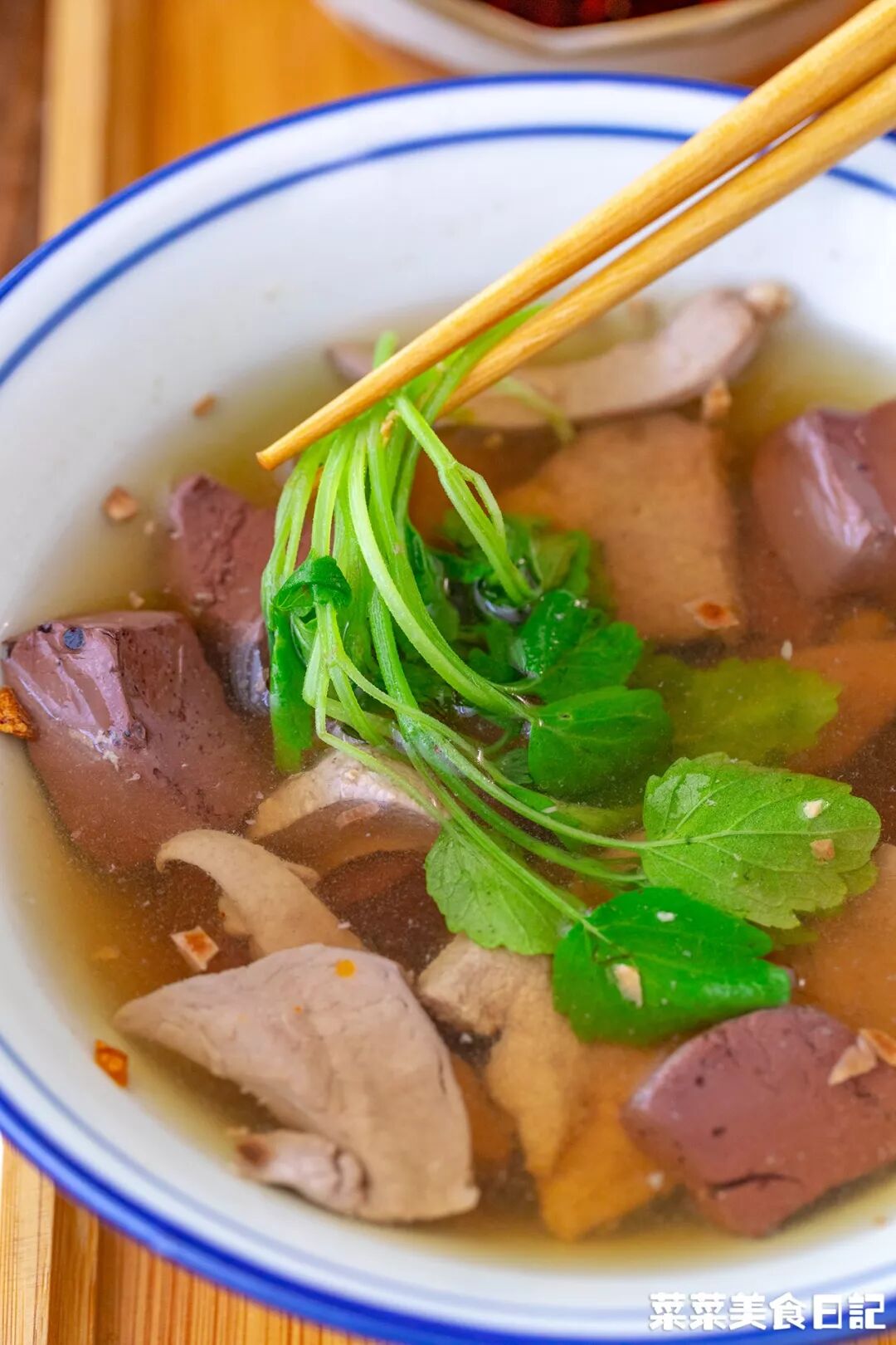 新鮮益母草,清香脆嫩,苦味清淺,剛好能去除豬雜的腥味,滾出來的豬雜湯,鮮甜清爽。