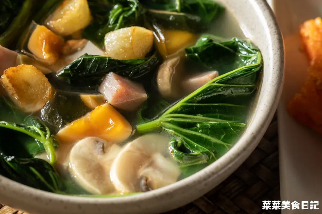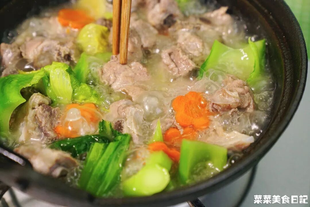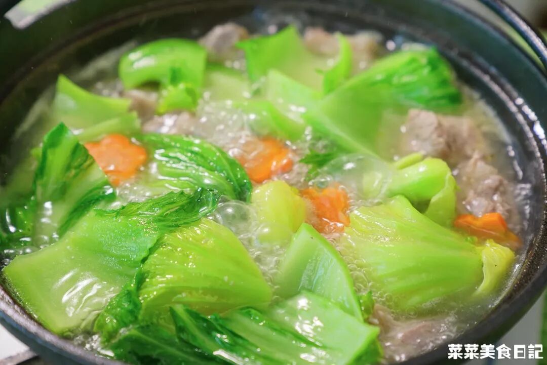 兩者壹同燉煮,芥菜吸收了鹹骨的醇香,苦味被去除,湯底鮮香回甘,喝上壹口,渾身都舒坦了。