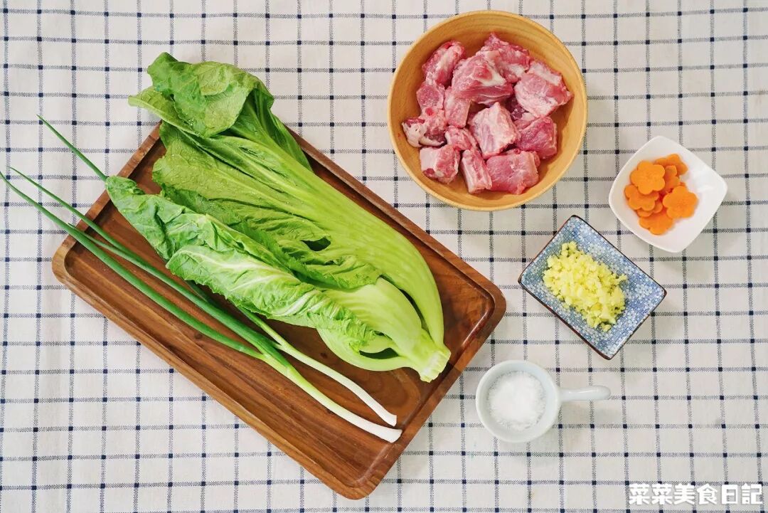 芥菜鹹骨湯芥菜1棵 排骨1根?胡蘿卜、蔥、姜、鹽適量