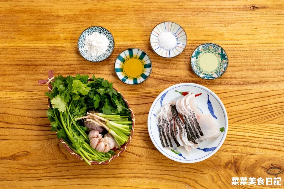 香菜魚片湯黑魚片半條 香菜300g 蒜1-2瓣?鹽、食用油、料酒、澱粉各1小勺