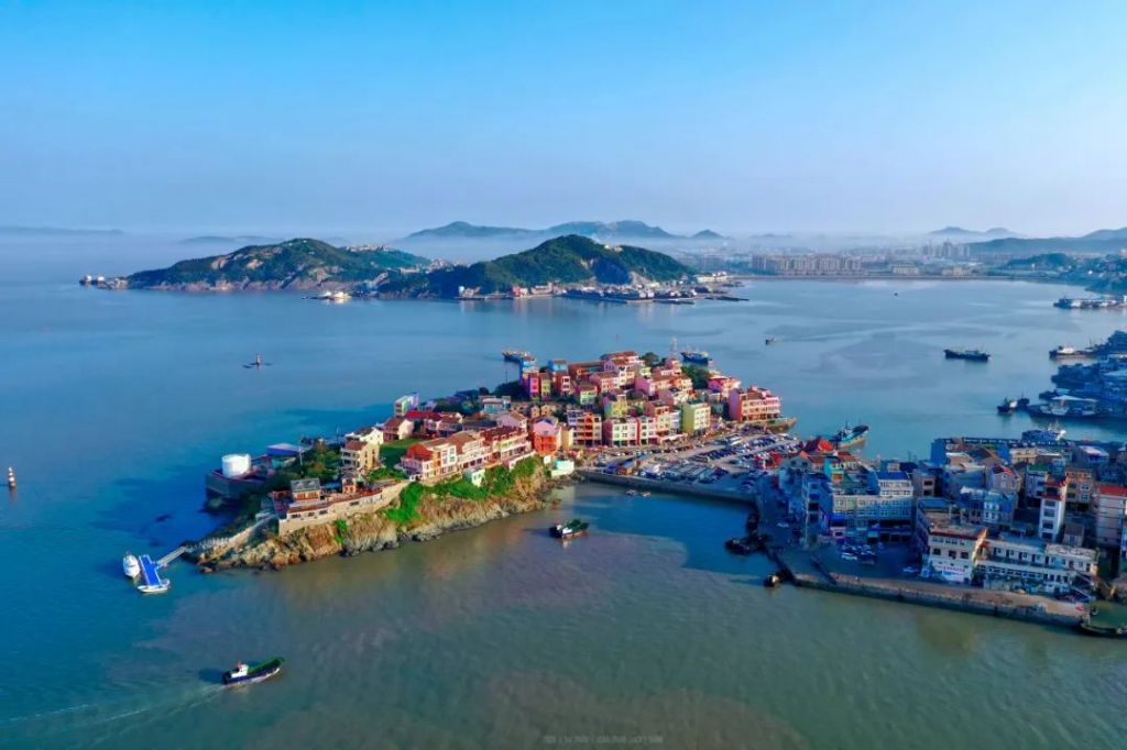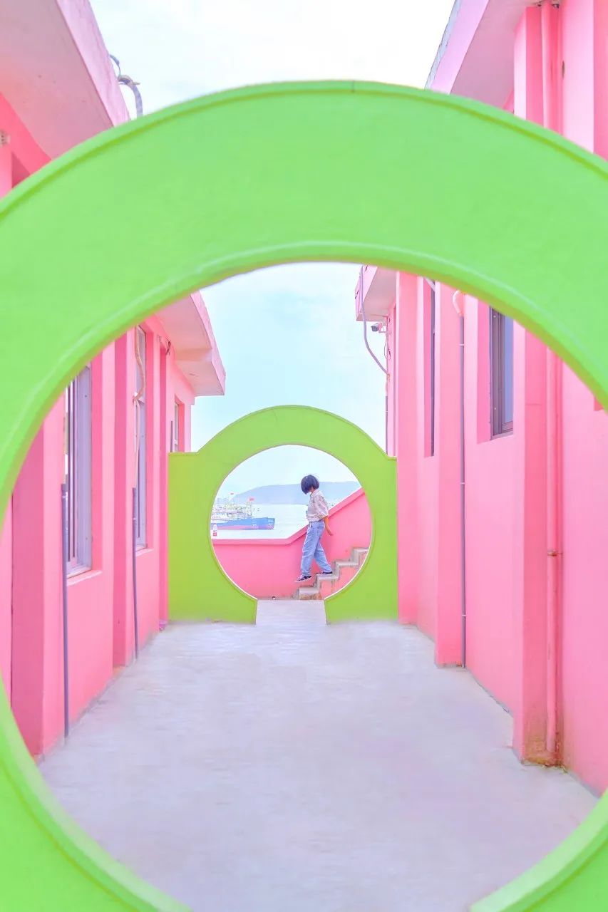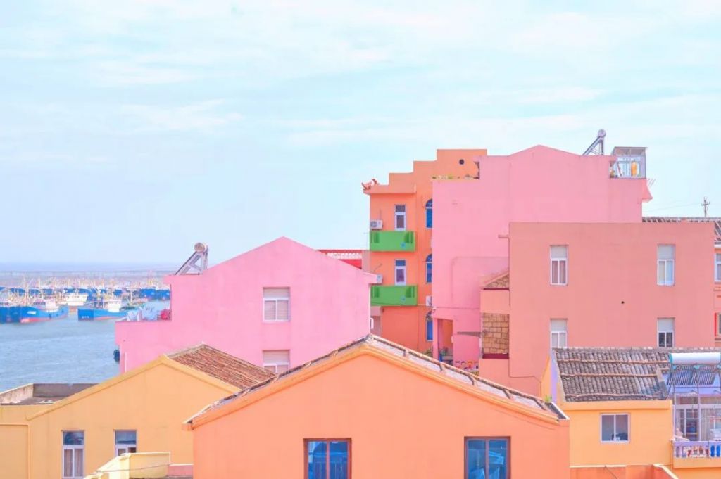 村里的房子被刷成五颜六色的,像是调皮的小孩子打翻了颜料。