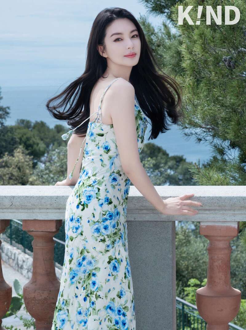 壹襲吊帶綠色碎花長裙,綠意繁花,清新自然,勾勒得身材凹凸有致。