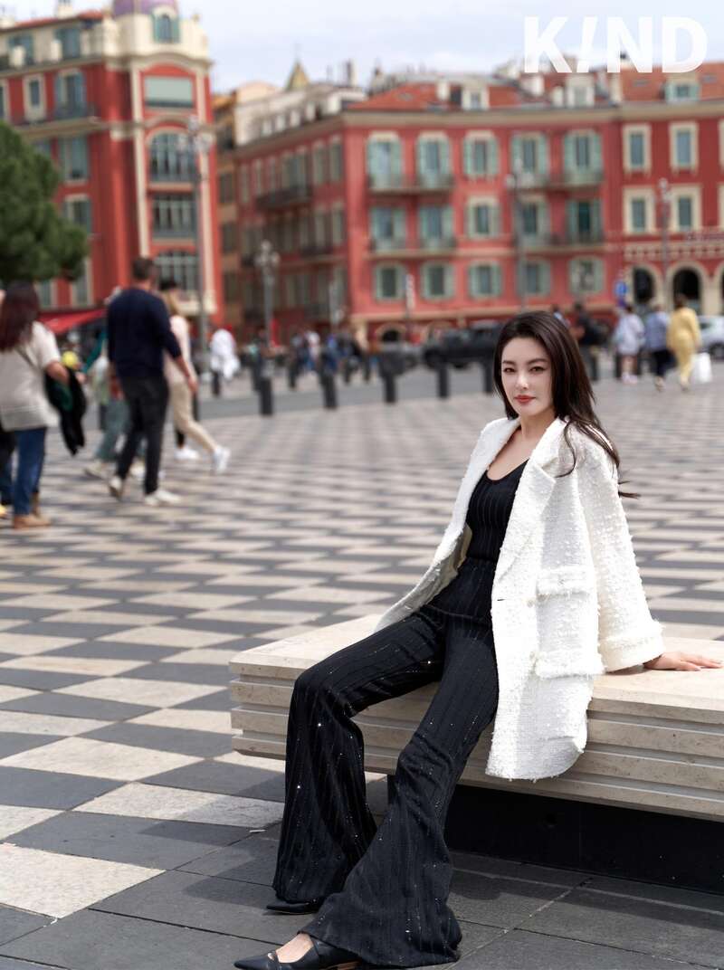 披上白色呢子外套,在法國街頭大秀傲人身材,連體褲上的亮片裝飾和張雨綺的美貌壹起閃閃發光。