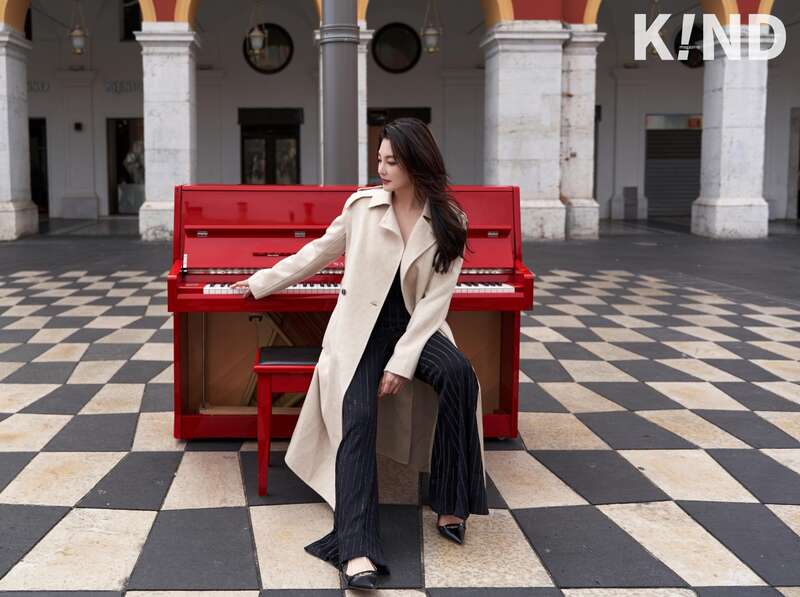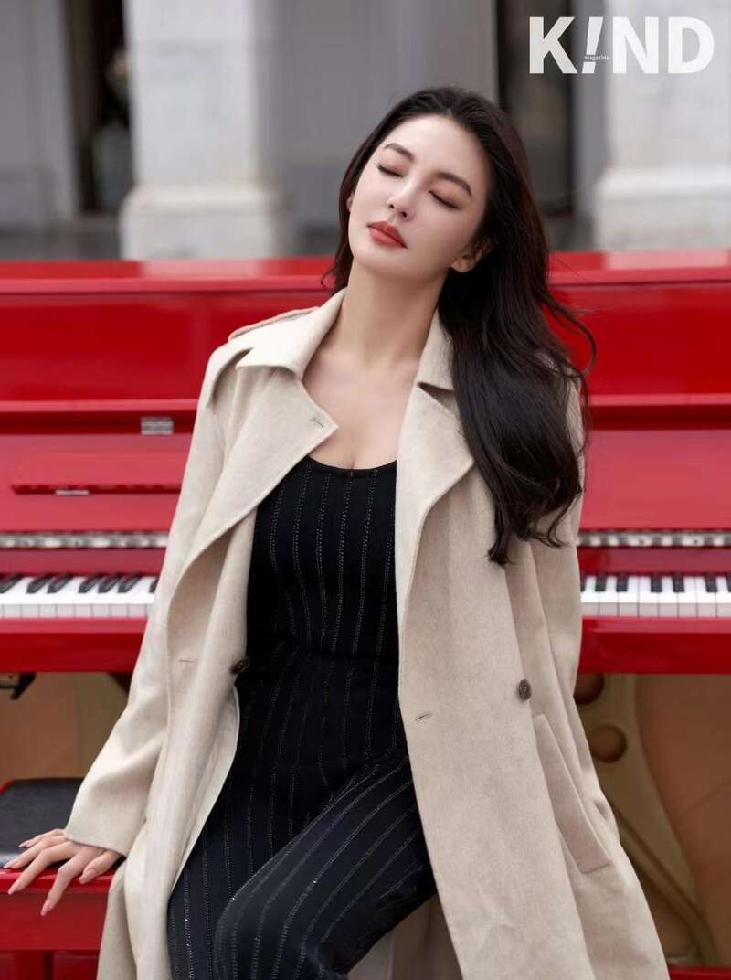 換上風衣,坐在紅色的鋼琴前,是想要即興彈奏壹曲嗎?