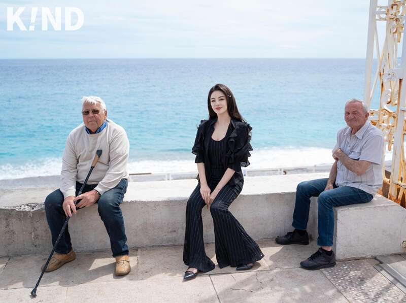 在海邊,融入當地人的生活,眼神中帶著溫柔,散發自然明朗的氣質。