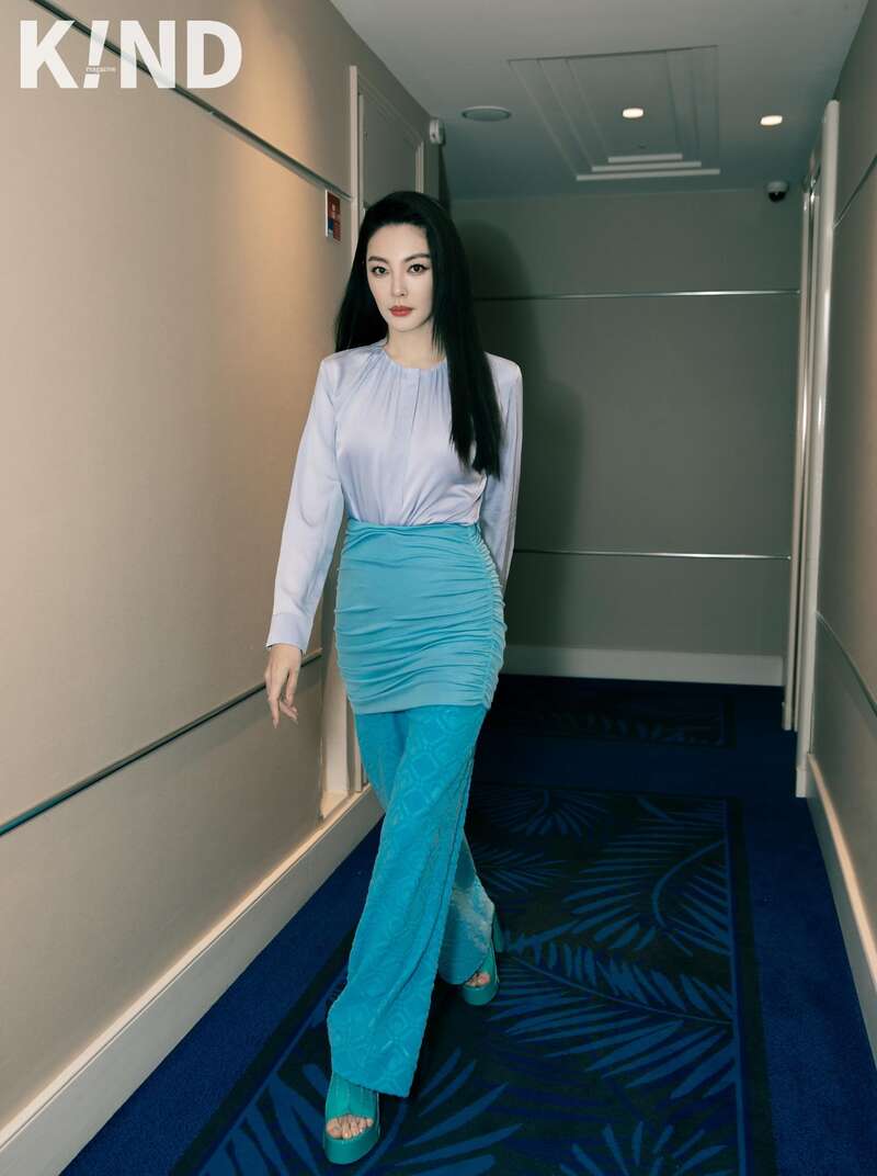 絲綢上衣搭配藍色半裙和長褲,雙眼放電,讓人不由自主地為之傾倒,愛慕者的隊伍是不是更長了?