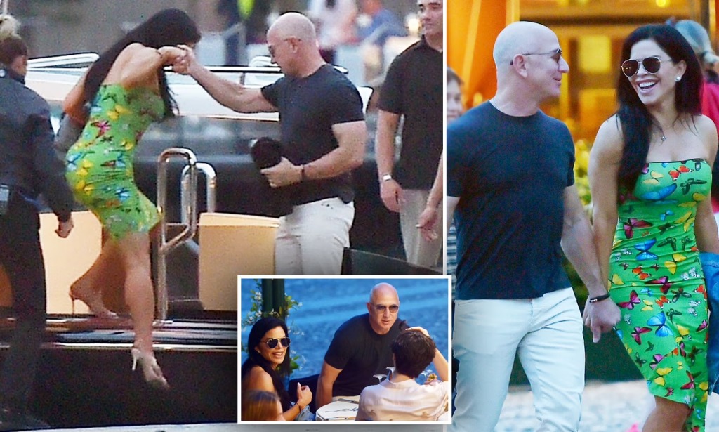 與此同時,59歲的貝索斯身著深色T恤、奶油色褲子、運動鞋和飛行員太陽鏡,這是他在新游艇上旅行時的常用裝扮。