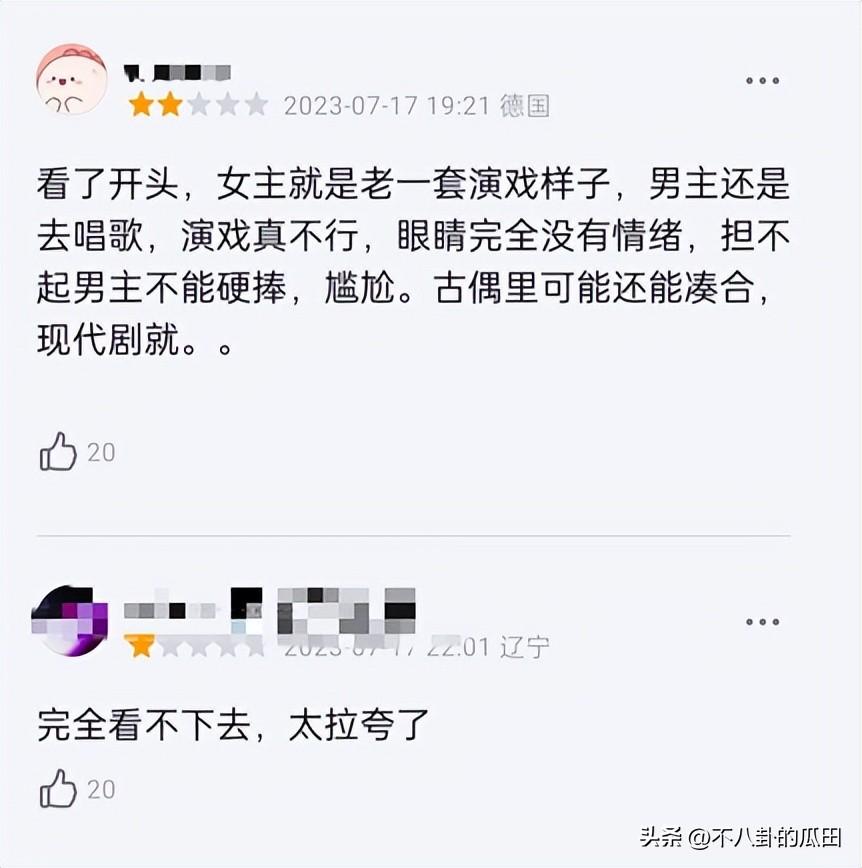 網友對於她的演技也幾乎是“0好評”,差評如潮,稱之為“千戲壹面”和“滴眼藥水哭不出來的演技”。