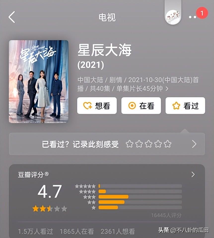 其中《大宋宮詞》評分3.7分、《陪你壹起長大》評分4.9分、《我是真的愛你》評分4.6分、《星辰大海》評分4.7分。