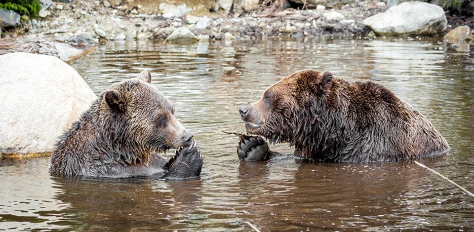 但乐趣还不止于此,您还可以探索山上的野生动物保护区,这里是大量野生动物生活和嬉戏的场所,如猫头鹰或灰熊 Grinder 和 Coola。