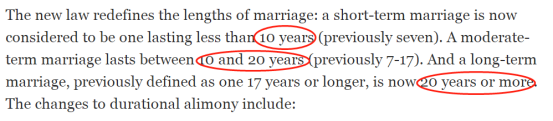 短期婚姻現在被認為是持續時間少於10年的婚姻(以前是7年)。
