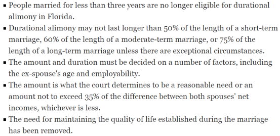 在佛州,結婚不滿3年的人不再有資格獲得時限性贍養費;