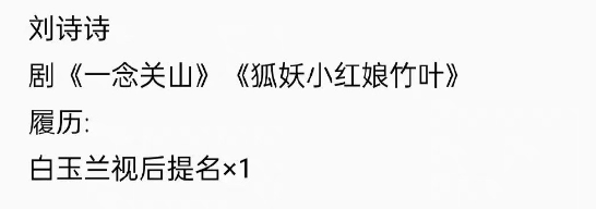 尤其是上個月趙麗穎陪跑百花獎後,我順勢去搜了壹圈劉詩詩的獎項。