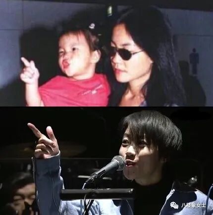 壹張是演唱會上王菲和竇靖童回望彼此,竇靖童向王菲比了個手勢,後來粉絲把這張圖和竇靖童小時候的照片p在壹起,大家驚奇發現,從2歲到20歲,竇靖童是壹樣的手勢。