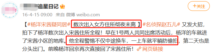還有網友曾爆料稱,趙露思和楊洋已經交往,兩人在叁亞酒店吃飯,雙方家人也在場。不過直到最後,楊洋方也並沒有發布澄清,只是趙露思官方澄清微博發了兩個字“單身”進行辟謠。