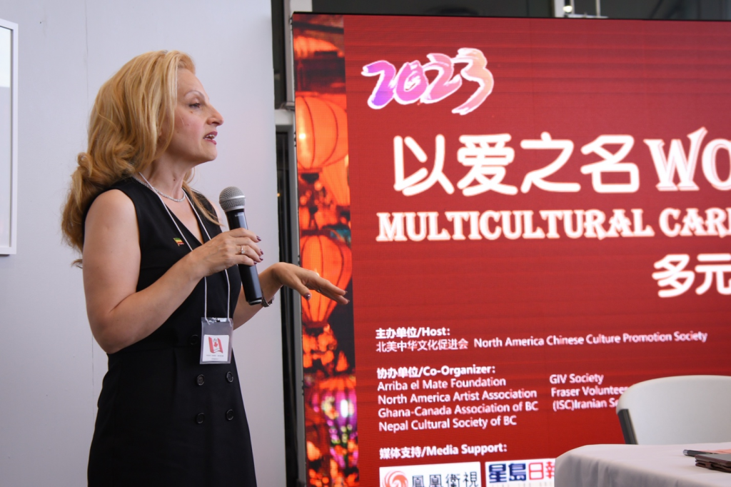 伊朗老年協會的Mojgan Strudwick女士致辭,她說, 世界上有兩件事情是不需要語言表達的,壹個是人性,壹個是愛。以愛之名來組織這次多元文化嘉年華活動,伊朗文化就可以和中華文化很好的融合。感謝主辦方對伊朗表演團隊的邀請。屆時,大家可以欣賞到伊朗文化對愛和美的表達。希望我們壹起,去愛這個美麗的國家,美麗的世界。
