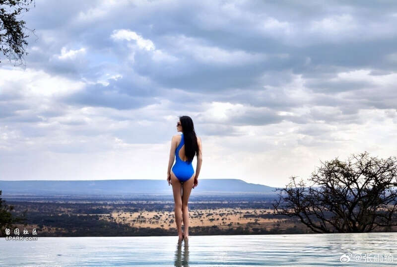 曬出的照片裡,張雨綺披著長發,化著美妝,身穿克萊因藍連體泳衣,泳衣中間的鏤空設計襯得張雨綺愈發性感魅力,美得讓人移不開眼。