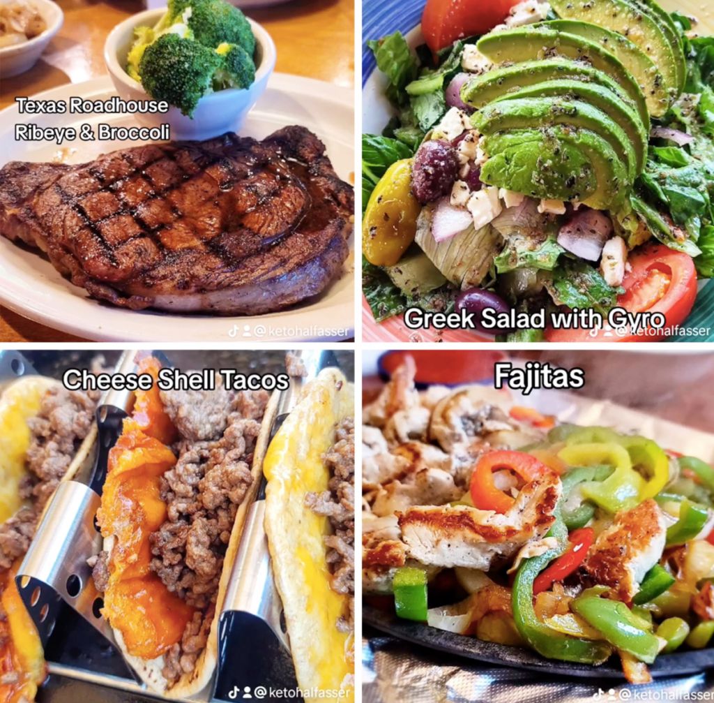 晚餐,来自德克萨斯路屋的鸡肉炸牛排和土豆泥,变成了大份的科布沙拉,配上煮熟的鸡蛋、培根和黄瓜,或者配上西兰花的牛排,或配沙拉的猪排,或低碳水化合物薯条上的披萨配料。