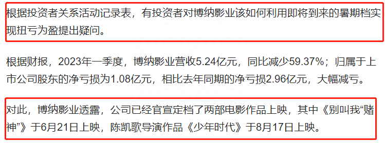 2023年暑假檔博納主推兩部電影上映,壹部《別叫我“賭神”》壹部《少年時代》,前者正趕上《八角籠中》超前點映,最終票房4078.1萬;後者連上映都沒能上映,直接撤檔了。