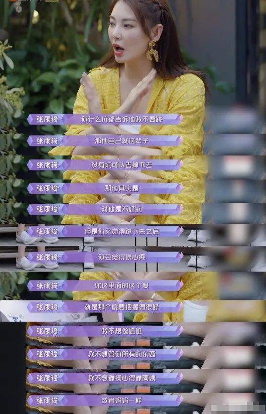 但當被問到會不會幫助對方,讓對方避免“踩坑”的時候,人間清醒的張雨綺則說,她不會,因為她不想做姐姐,不想操心地像阿姨或者媽媽。