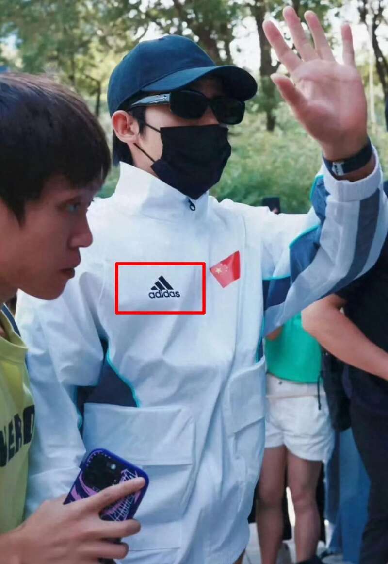 發布視頻的網友強調的是白色外套左邊所貼的國旗圖案,吃瓜的網友第壹時間卻不僅僅看到了左邊的國旗,還有右邊的品牌logo,壹個碩大且搶眼的阿迪品牌標志就這樣闖進了大眾的視野。