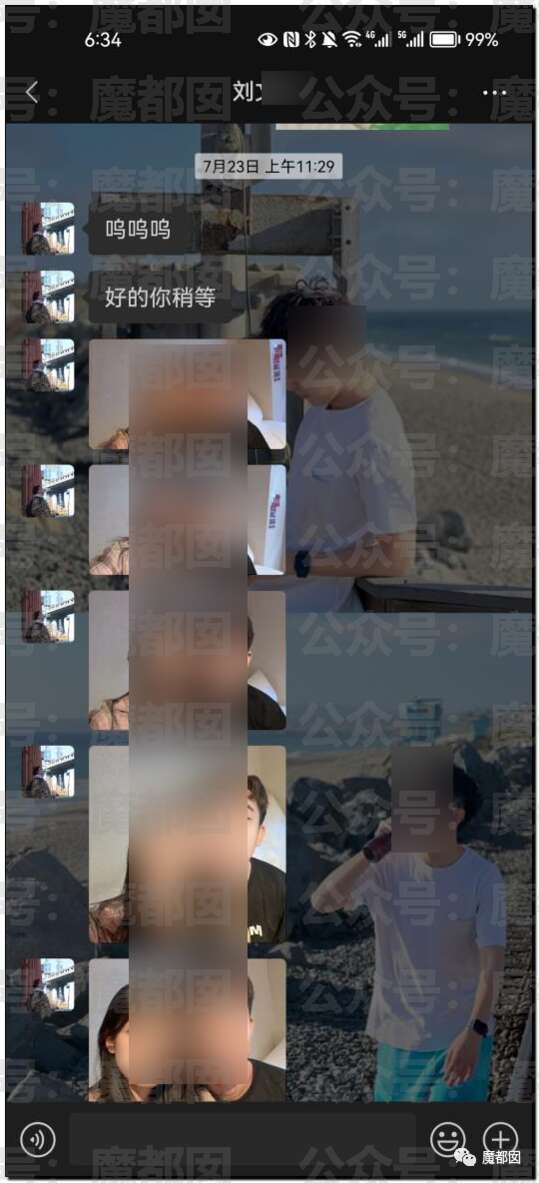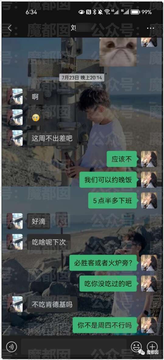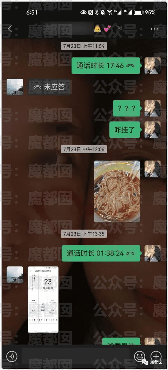 女主和劉某,由於丁某之前刪了她和劉某的對話框,所以獲取到的聊天記錄時間段為2023年7月23日-2023年9月底的,由聊天記錄可知,截止7月23日她們已經約會數次,最右側為丁某與出軌對象1號劉某拍的“情侶合照”: