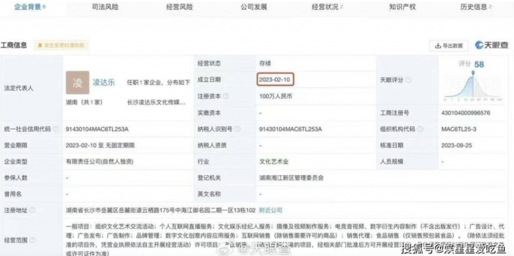 而在今年2月,凌達樂創立了屬於自己的文化傳媒有限公司,