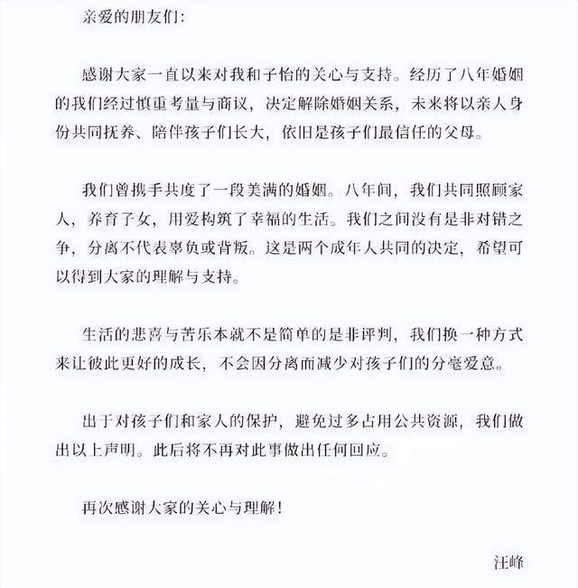 汪峰现在又重新恢复了单身,也有人发现,其实他在去年开始就已经摘下了和章子怡的结婚对戒,最近也被拍到一个人带娃,这些都让人感觉不同寻常,或许也印证了两个人感情早就已经开始出了问题,不过两个人毕竟曾经爱过,还有一对可爱的儿女,他们也是抱着好聚好散的心态,重新成为朋友和家人,所以大家就给他们空间吧。