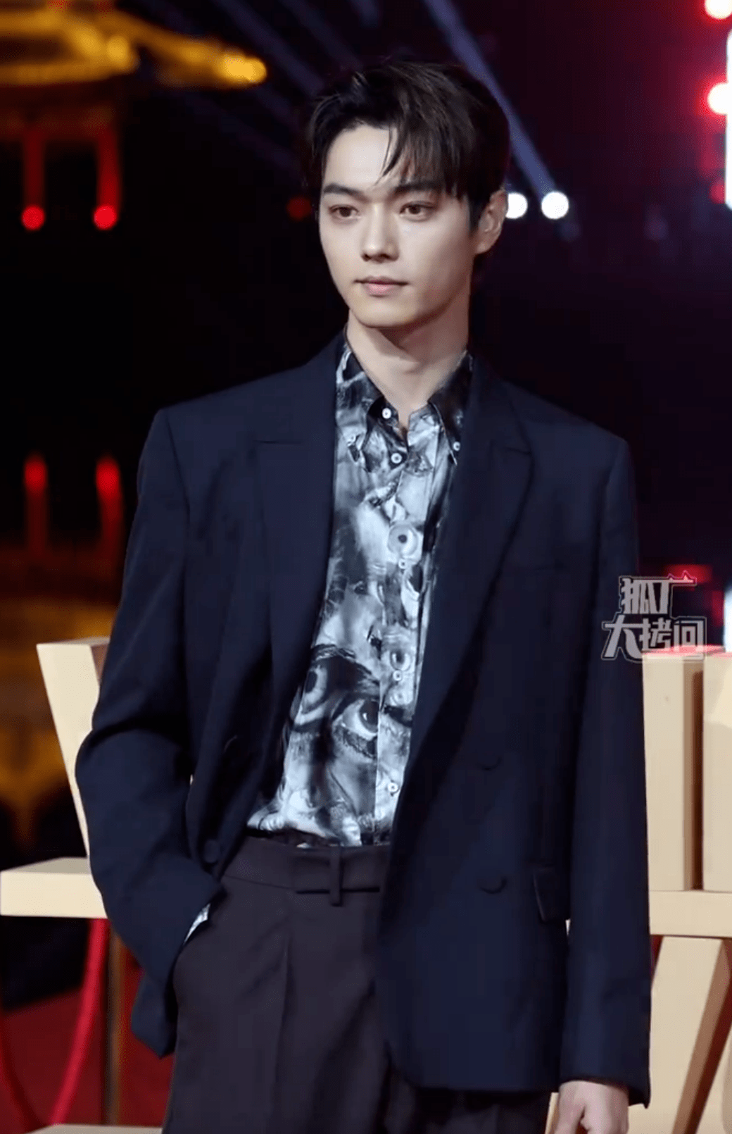 在橫店拍過N部戲的許凱,以壹身帥氣的黑色西服搭灰白襯衫亮相紅毯。
