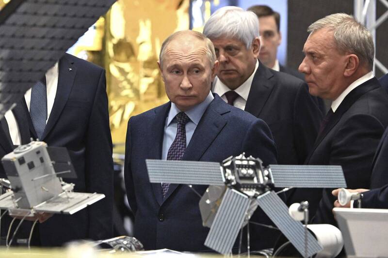 普京除了与幕僚一同参观火箭研发制造厂外,还与一群年轻的火箭科学家会面,确保俄罗斯在未来太空探索的发展能量。(美联社)