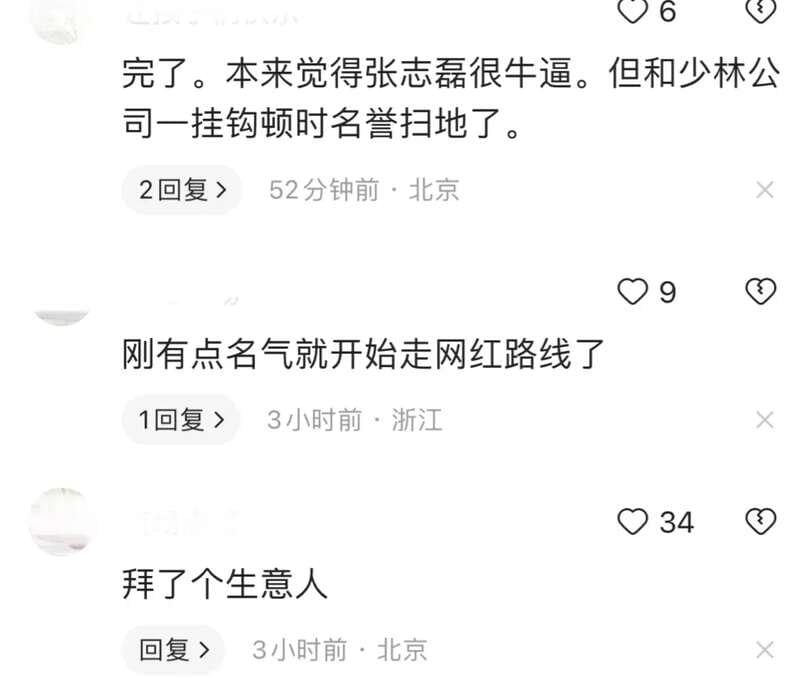 而拳王張志磊作為少林俗家弟子,選擇拜釋永信為師並獲得新的法名,展示了他對佛教的虔誠和對修行道路的追求,這壹舉動不僅對自身修行有益,但是,也遭受到了壹些質疑,認為他這是跟”網紅“混在了壹起。
