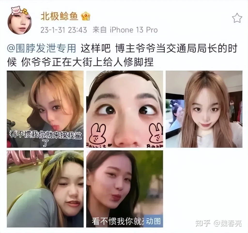 2023年3月,壹位名叫“北極鯰魚”的微博網民在網上掀起軒然大波。她陸續發布了“家裡有9位數”、家人“感覺貪了”、“想在哪個國家就在哪個國家”等炫富言論,甚至還曬出家中長輩多年前與領導的合影、自曝自己的爺爺是某地交通局長等情況。面對批評,她還辱罵網友是“低賤老鼠”、“下等人”、“底層賤畜”、“支性難改”等,引起了強烈民憤。諸多網友都希望官方能給個說法,都期盼著北極鯰魚能付出代價。眼見輿情凶猛,深圳交通局在事件發生不久後就發表通報說要盡快徹查此事。微博平台則雷厲風行地直接將“#北極鯰魚”話題全面封禁。