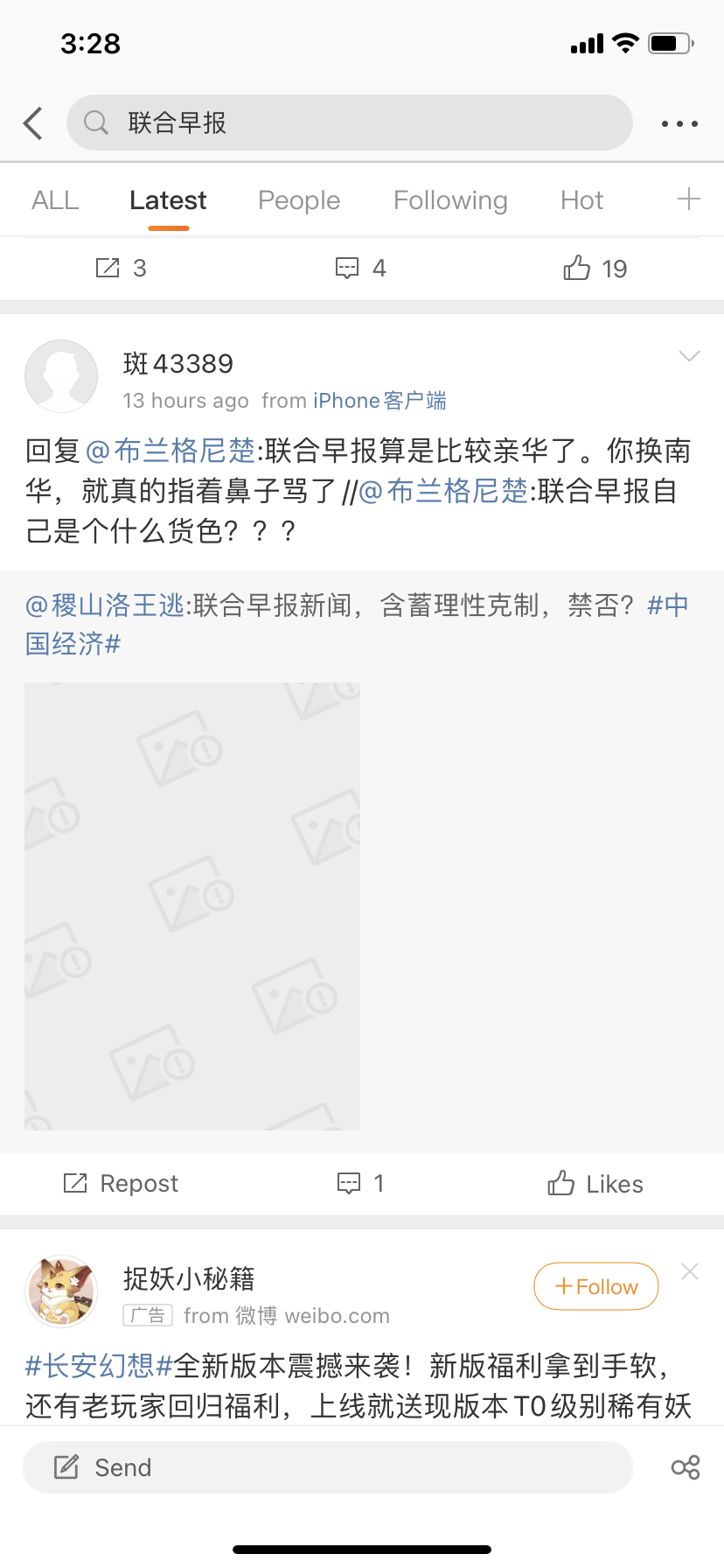 中國數字時代注意到,8月23日在微博平台上,部分網友談及了這篇評論文章,通過關鍵詞“聯合早報”、“劉夢熊”可搜到多條相關微博: