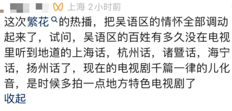 《繁花》評論區,很多上海觀眾在討論劇裡的演員是否發對了尖團音,或者應不應該文讀,推廣上海話的博主快感動哭了:多少年沒見過這麼多人關注上海話了。