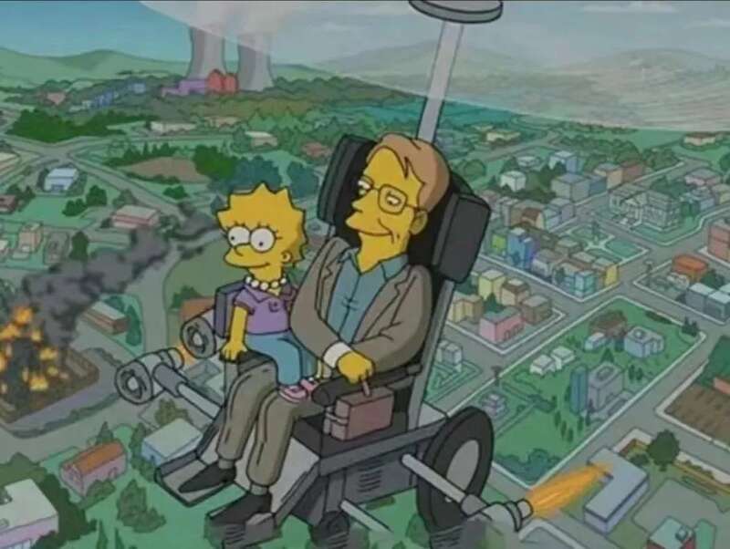 电视上的霍金可并不那么严肃,他作为“娱乐人”真正出圈的, 要数动画片《辛普森一家》。代表当代物理学前沿的顶尖科学家,竟然在动画片中跟满嘴胡言乱语的辛普森男主人翁把酒言欢,用各种“理论”去解读辛普森家庭那几个孩子的胡闹玩意,反差过于鲜明。正是这样,这位科学家摇身一变,走向了文化偶像这一身份,也为此后被玩梗,被恶搞,被攻击,埋下了伏笔。