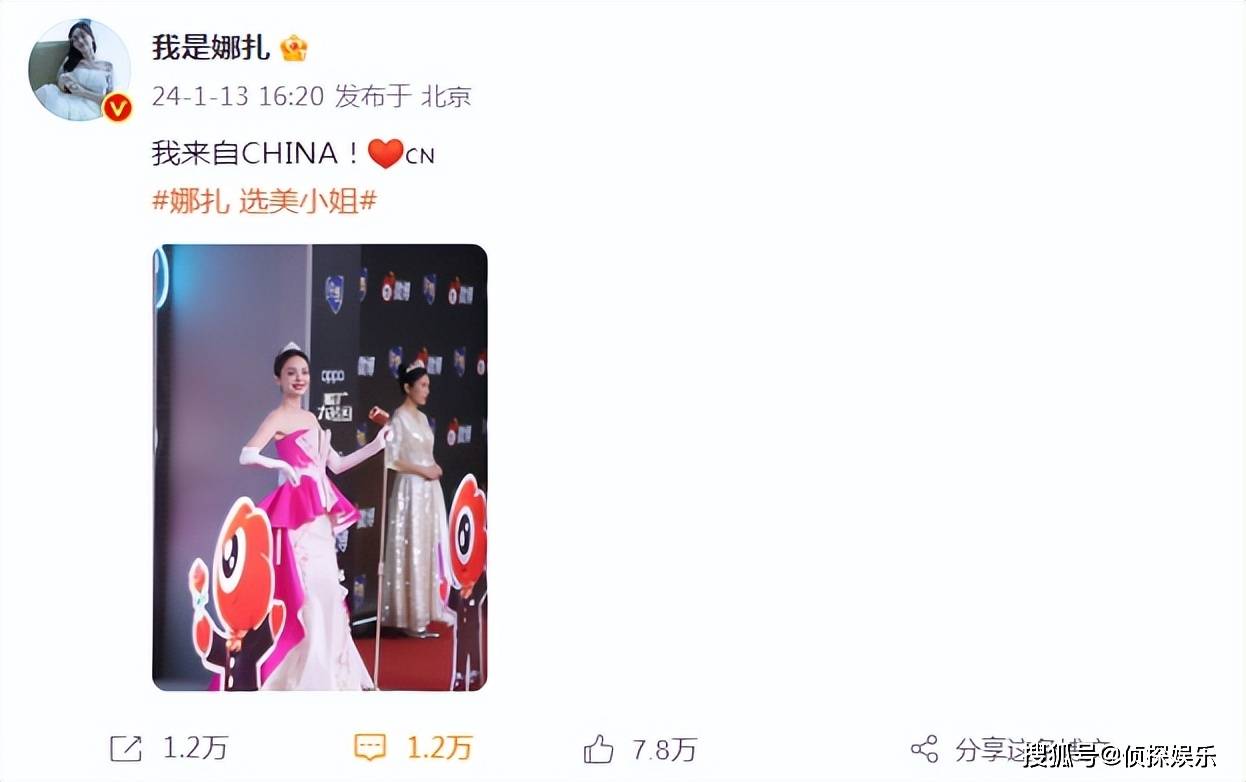 其實,娜扎的前兩套造型也是拾分惹眼。早在13日下午的時候,娜扎就在自己的社交賬號上曬出了此次活動的美照。在po第贰套造型的時候,她還開心寫道:“我來自China”,頗有幾分選美小姐的既視感。