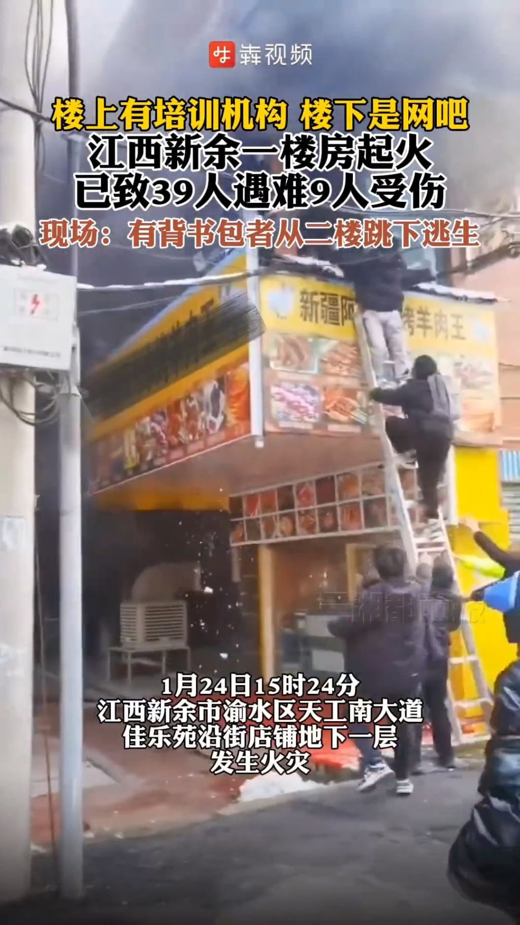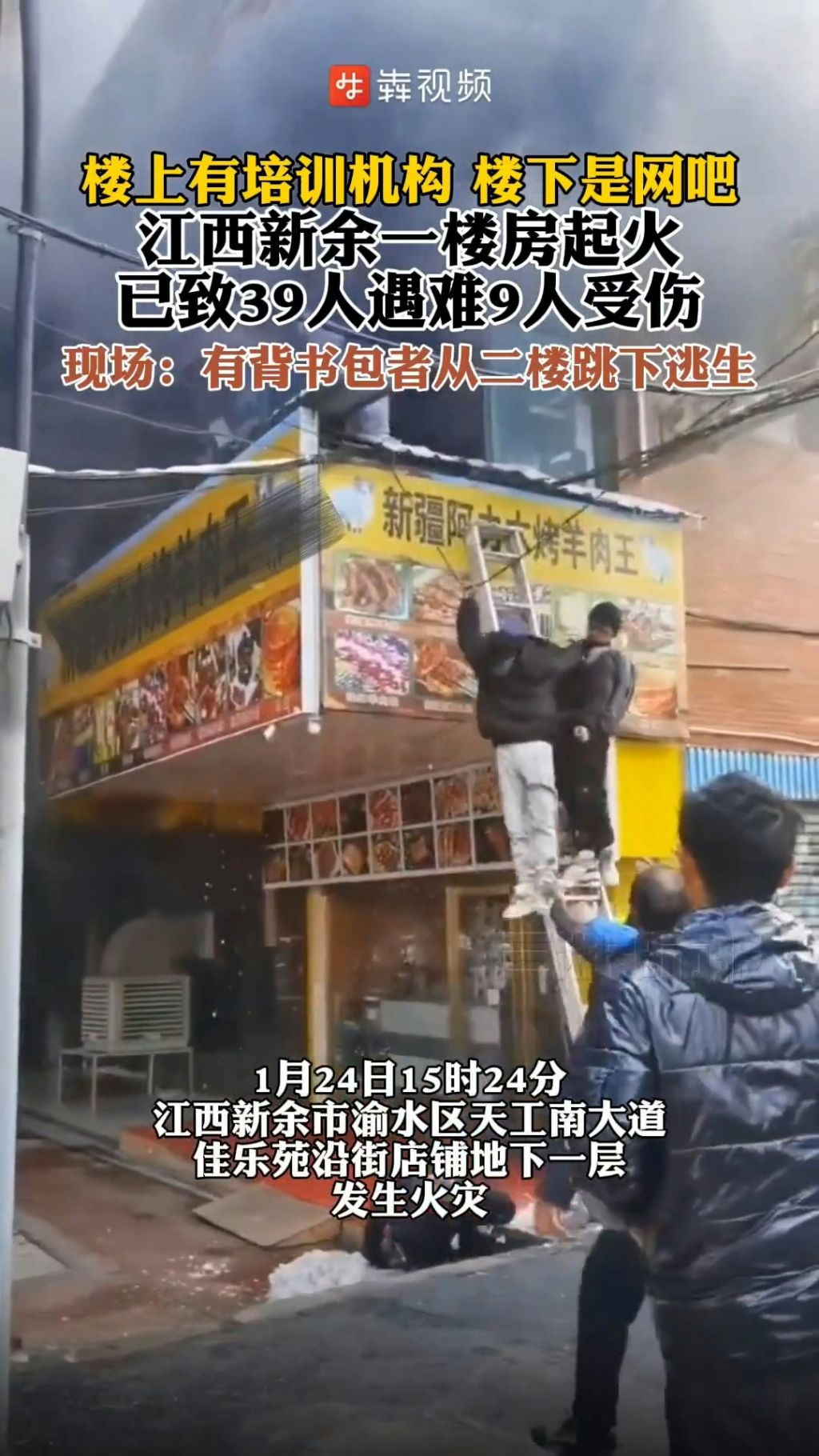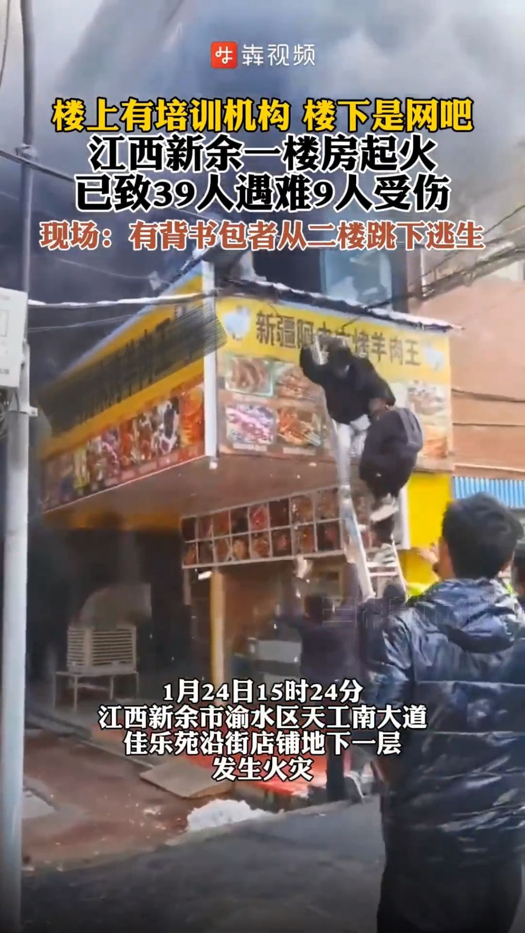 江西省新余市渝水区沿街店舖地下一层昨日(24日)发生大火,造成39人死亡、9人受伤。(网络图片)