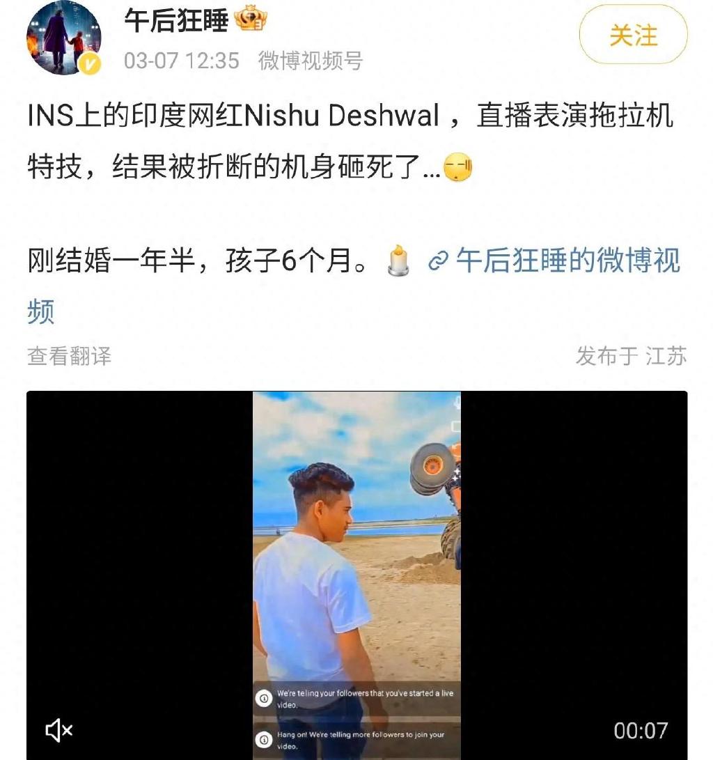 尤其是这个开拖拉机表演,网红Nishu Deshwal相当热衷,经常给大家直播展示“绝活”。