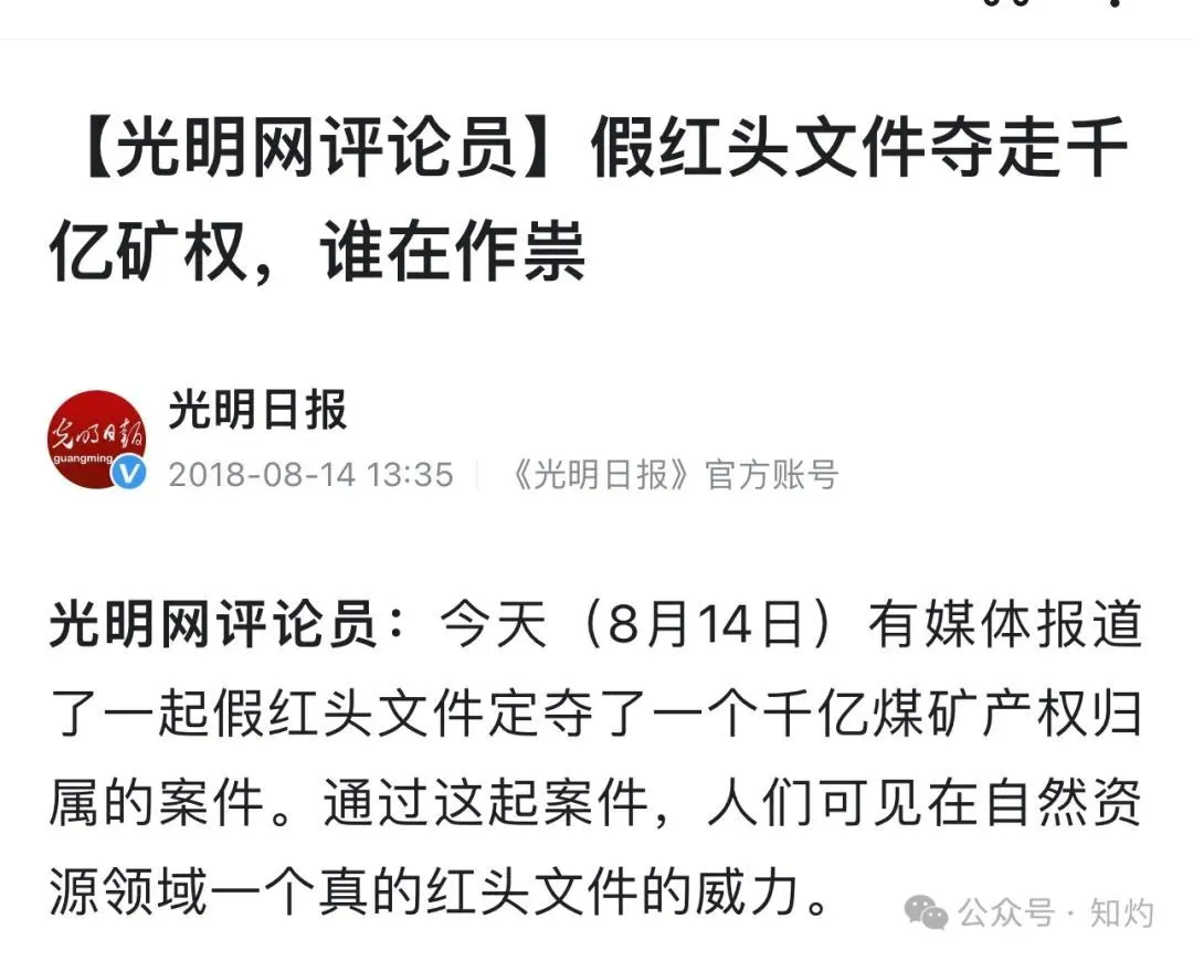 金宗博舉報壹年後,終於引其重量級媒體的關注——2018年8月,新華社《經濟參考報》刊發深度調查報道《涉假紅頭文件“奪走”千億礦權》壹文,披露了金宗博反映的問題。