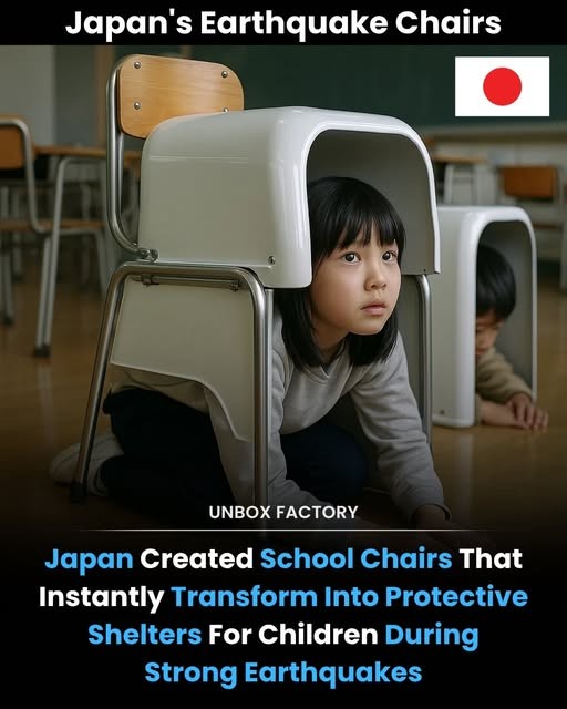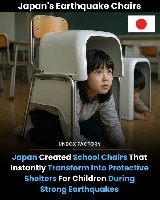 地震发生时,孩子们只需拉动一个拉环,椅子就会变成一个小型防护罩,保护他们免受坠落碎片的伤害。