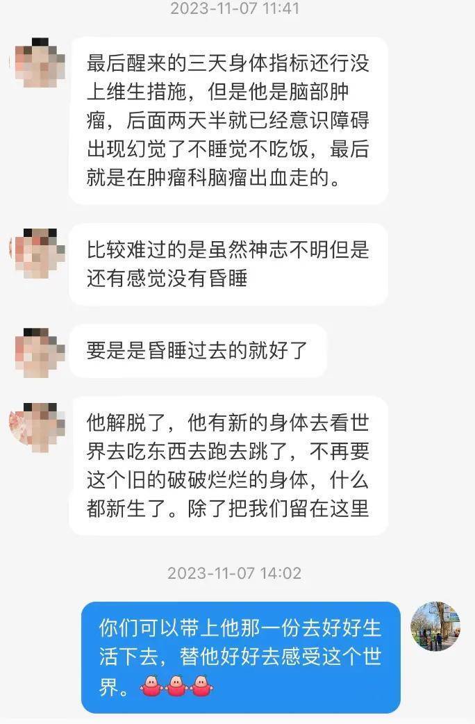 她經常半夜兩叁點鍾就把我爸搖醒,喊他起來聊聊人生。和我們吃飯的時候,吃著吃著就開始講自己的病情,給我們交代後事,全家的精神好像都被她拖垮了。
