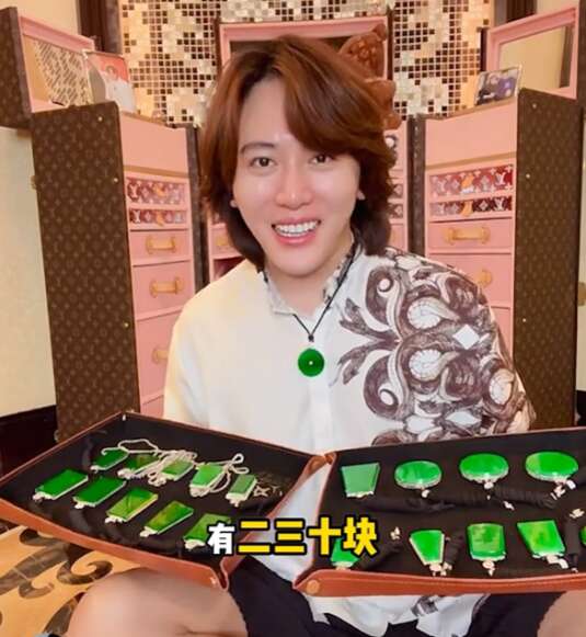 在他的视频里,帝王绿的挂件比风油精还大,让不少网友震惊:就算是啤酒瓶底,我都不敢做这么大的。