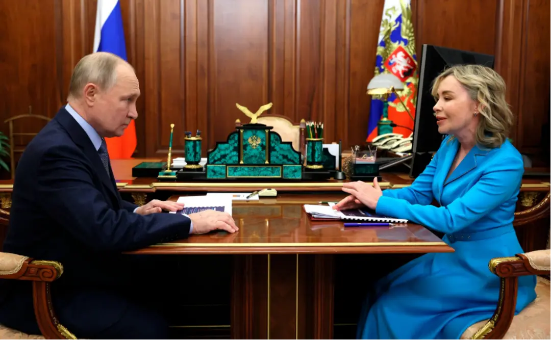 2024年1月,普京(左)在克宫会见拉季奥诺娃。图源:克里姆林宫网站
