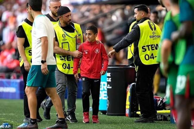 一个10岁左右的男孩开了头,他在下半场的比赛即将开始前,突破安全警戒线飞奔到了C罗旁边。超级巨星很是暖心地接纳了他,还给了他一个拥抱。