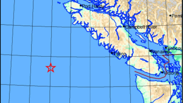美国国家海啸预警中心表示,5.5级地震发生BC省爱丽丝港(Port Alice)西南约110英里处。