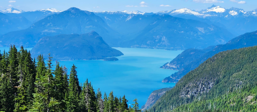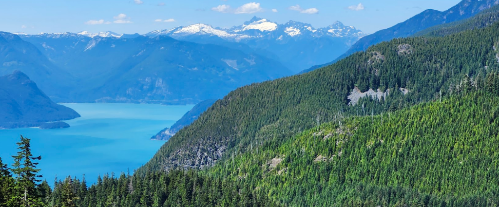 接著換乘天空肆人吊椅(Sky Quad Chair)到達海拔 1,440 米(4,720 英尺)的Strachan 山頂,果然是風光無限,可 360 度欣賞北岸山脈、布拉德灣(Burrard Inlet)、大溫地區、喬治亞海峽和溫哥華島的壯麗景色。