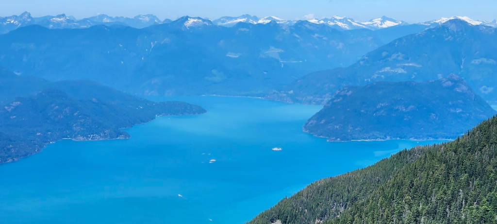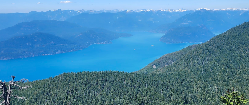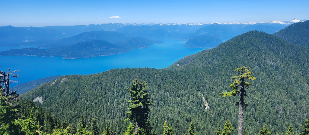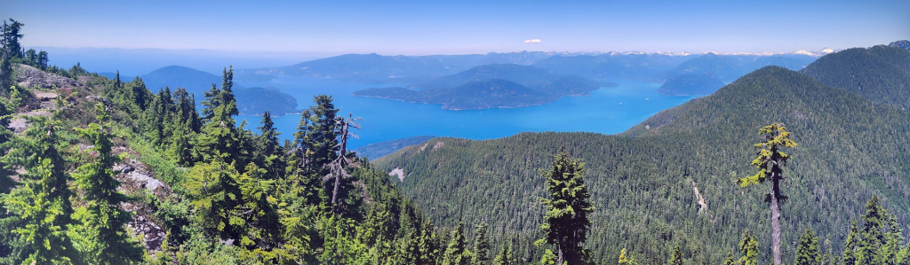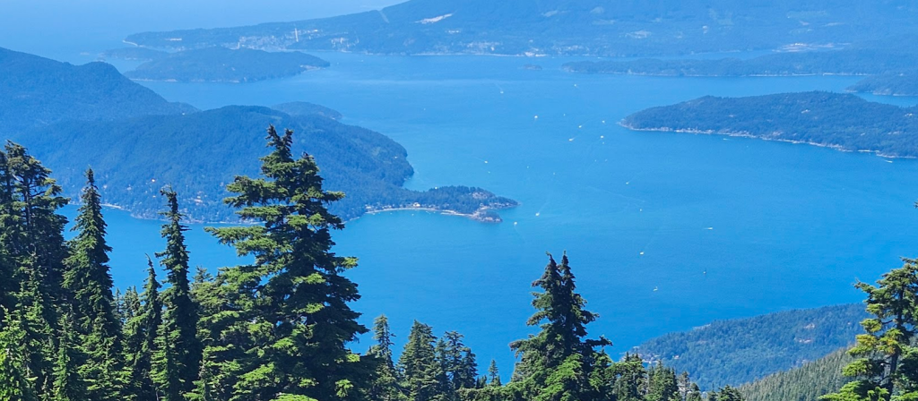 接著換乘天空肆人吊椅(Sky Quad Chair)到達海拔 1,440 米(4,720 英尺)的Strachan 山頂,果然是風光無限,可 360 度欣賞北岸山脈、布拉德灣(Burrard Inlet)、大溫地區、喬治亞海峽和溫哥華島的壯麗景色。