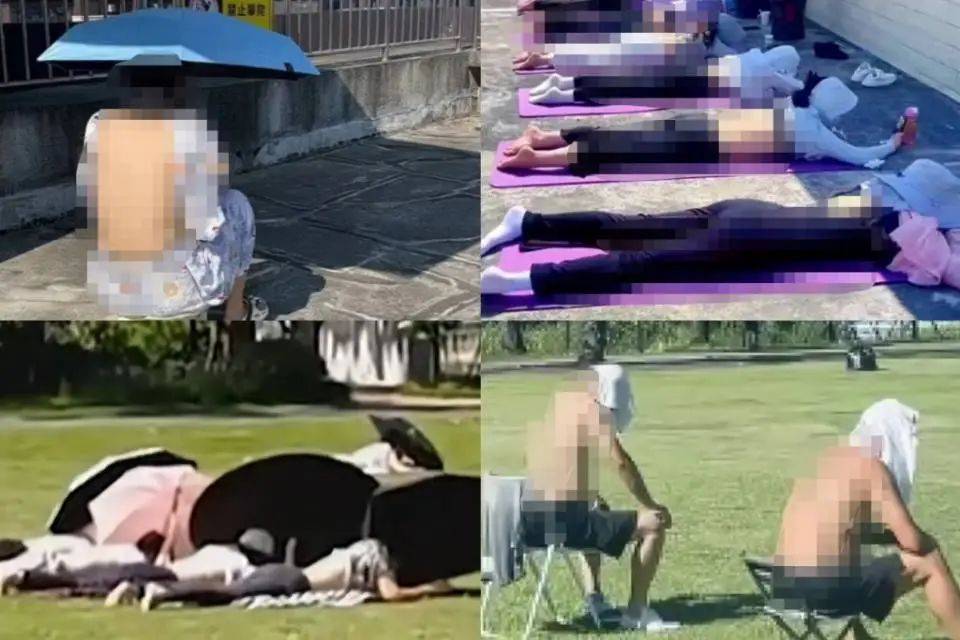 公園裡、草地上、屋頂上,到處可見的“曬背族”。